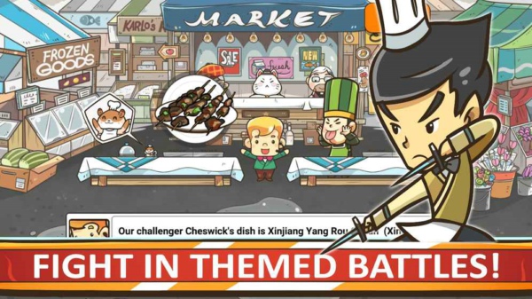Chef Wars是一款關(guān)于食物的RPG!招廚師,尋找食材,以及來(lái)自世界各地的發(fā)明配方。使用這些食譜贏得主題廚房的戰(zhàn)斗!成為最有名的廚神、阻止世界霸權(quán)的邪惡男爵!【游戲特色】