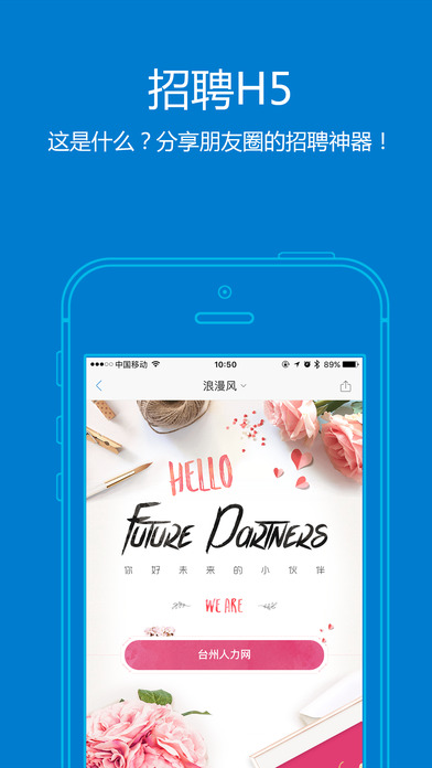 個性化招聘:多個招聘H5模板任你選,隨時分享朋友圈,高端大氣上檔次