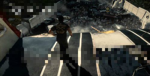 在進(jìn)入下水道之前,Gary會(huì)叫你幫忙開(kāi)門(mén)。這時(shí)候到門(mén)口的角落有一輛藍(lán)色的汽車(chē),將它開(kāi)到大門(mén)左邊的側(cè)門(mén),以汽車(chē)為落腳點(diǎn)跳到樓頂,即可順利到達(dá)房間里。再將大門(mén)打開(kāi),和Gary一同清理喪尸群。