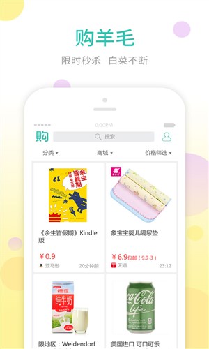 4、N多值得買:精選國(guó)內(nèi)、海淘限時(shí)特賣商品,還有9.9元包郵羊毛可揀;