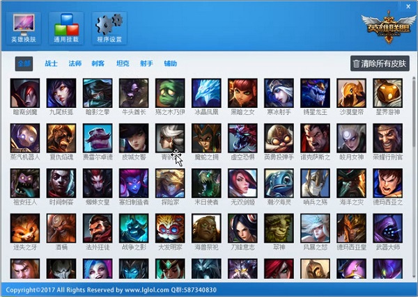3.不再使用軟件請關(guān)閉lol,點(diǎn)擊軟件界面的清理所有皮膚。