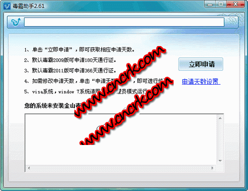 先安裝毒霸,然后執(zhí)行該程序,選擇申請時間,默認一年(366天)。