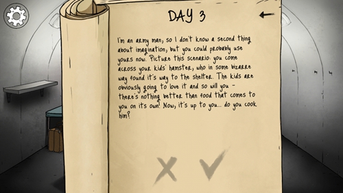 生存游戲一直是游戲界一個經(jīng)久不衰的題材,很多玩家喜歡這種末日生存的感覺——想盡辦法讓自己生存下來,并逐步壯大自己。也無怪乎廠商們投其所好,推出了諸多產(chǎn)品。《60秒》便是其中的一款,去年就已登陸PC平臺。時常被游戲主播拿來挑戰(zhàn)一把,開發(fā)商Robot Gentleman也順勢推出了移動版。游戲背景依舊設定在了一個深陷核災難的世界中,空襲還在持續(xù),而玩家所要做的就是在這種艱苦的環(huán)境當中生存下來,飲用水、食物、工具、武器等等物資都需要玩家自己去收集,同時還要保護好自己的家人。