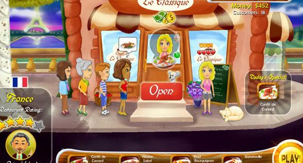 路易在巴黎經(jīng)營著一家餐廳Le Classique,但生意一直都不好。在一次機緣巧合下一只不平凡的老鼠幫他找到了家族的秘密食譜。路易決定重新振興起這家餐廳。游戲中共有74個關(guān)卡可以挑戰(zhàn),有多達20種不同的食譜,玩家還可以在5個國家里開設(shè)自己的餐廳。【游戲特色】