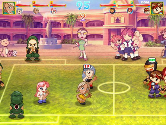 游戲一開始共有9支不同背景的求隊一起加入這場激烈的躲避球大賽,每個學(xué)校學(xué)員的造型自然都不相同,辣妹學(xué)園當(dāng)然是以火辣的造型登場,踩著厚底靴的109辣妹到底要怎么比賽呢?或許耍些小花招才是其獲勝的重點吧;水手服學(xué)園有別于辣妹清涼的穿著,每個人都以清純可愛的姿態(tài)登場,不過或許這樣的外表要作弊的話也比較不會被發(fā)現(xiàn)吧。
