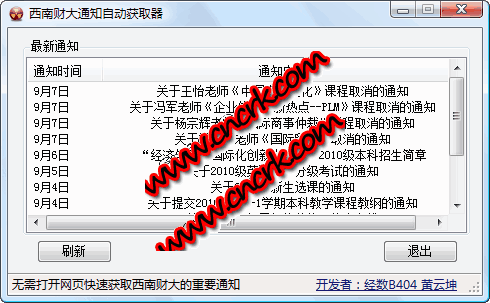 每天都要查看西南財大的網(wǎng)上通知。實在太麻煩了~~我自己寫了個程序方便查看.西財?shù)耐瑢W有興趣就去下吧。