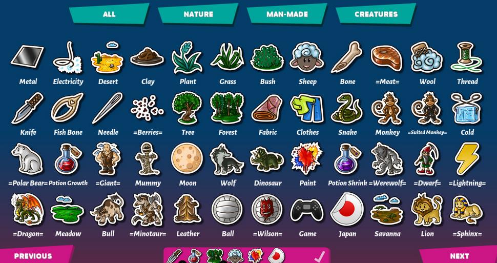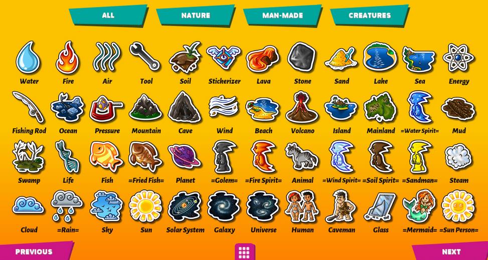 例如,結(jié)合貼紙“水”和“湖”,得到“?!辟N紙。結(jié)合“?!鲍@得“海洋”。繼續(xù)這些邏輯序列發(fā)現(xiàn)所有210 +貼紙。他們中的大多數(shù)可以制作使用的組合與其他標(biāo)簽,但他們中的一些人只有通過stickerizing [野]貼紙。這是游戲的特色。
