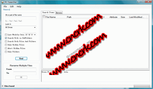PC Fsearcher V3.4.0.0 英文綠色免費版 PC Fsearcher是一款易用的文件和文件夾搜索工具。你可以輸入某個關(guān)鍵字或全名進(jìn)行搜索,可以設(shè)置在某個盤符上搜索。支持根據(jù)修改時間搜索,在子目錄搜索,只搜索隱藏文件等等功能