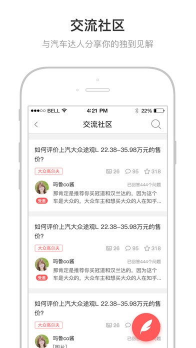 3. 交流社區(qū) - 在這里,有專業(yè)的汽車顧問,幫你解答你對(duì)汽車相關(guān)的一切疑問。當(dāng)然,你也可以把你所知道的知識(shí)告訴給所有人。