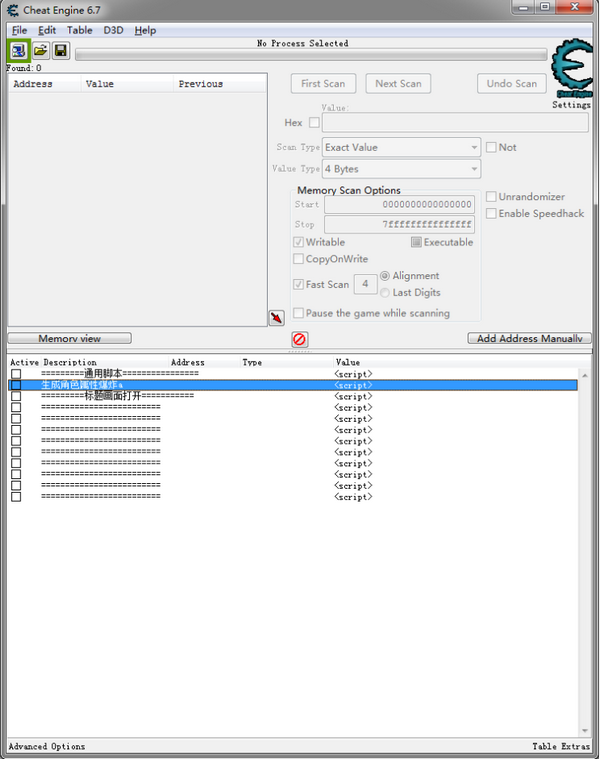 然后下方狀態(tài)欄就會出現(xiàn)CT文件的內(nèi)容,也就是修改器的功能了