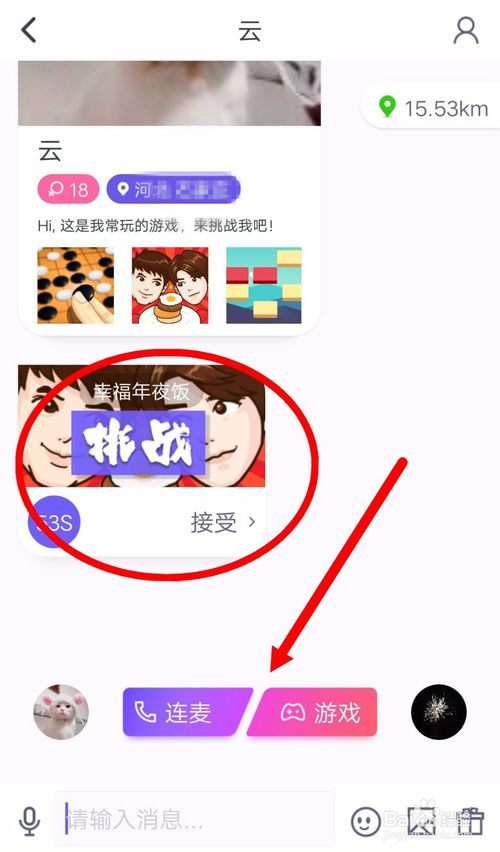 匹配成功后就會進(jìn)入聊天對話界面,我們可以點擊游戲選擇一款游戲讓對方接受,也可以選擇接受對方的游戲邀請進(jìn)行游戲。當(dāng)然我們也可以進(jìn)行下方 的聊天或者連麥。