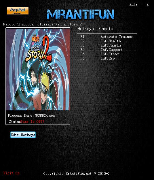 火影忍者究極忍者風暴2五項修改器 官方版 火影忍者究極忍者風暴2五項修改器是專門為《火影忍者究極忍者風暴2》玩家們而推出的游戲修改工具,用戶安裝使用此款修改器之后,可以獲得無限生命、無限查克拉、無限電荷、無限道具和無限亮等五項游戲操作輔助功能。