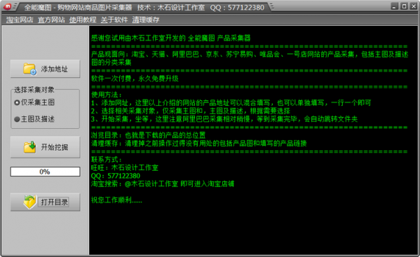 ?全能魔圖是一款專為淘寶賣家以及其他購物平臺的賣家所準(zhǔn)備的圖片采集工具。該工具使用非常簡單,只需要在軟件中添加要采集圖片的地址,點擊開始挖掘即可,一鍵采集,自動保存,超級好用。