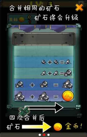 4.當(dāng)?shù)V石被合并四次之后就會變成金幣;收集足夠的金幣,就可以通過當(dāng)前關(guān)卡!