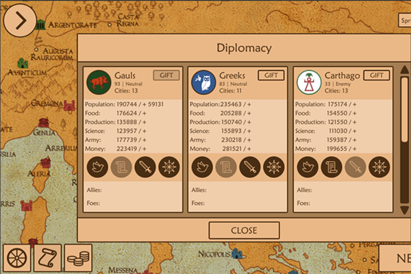 《羅馬軍團(tuán)(The Legions of Rome)》是一款由“The Tambourine”所制作的策略戰(zhàn)棋類游戲,該游戲?qū)?huì)以偉大的羅馬帝國(guó)為主體所展開的一段軍事任務(wù),你在這里將會(huì)成為一個(gè)國(guó)王,直到一個(gè)偉大的王國(guó)誕生,這個(gè)王國(guó)將征服所有的古代文明,相信很多喜歡戰(zhàn)爭(zhēng)策略的玩家會(huì)愛上這款游戲!【配置要求】