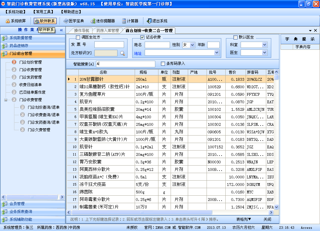 (4)、收費(fèi)模塊采用智能方式,簡單、方便、快捷、準(zhǔn)確智能定位藥品材料,大大提高收費(fèi)人員效率。