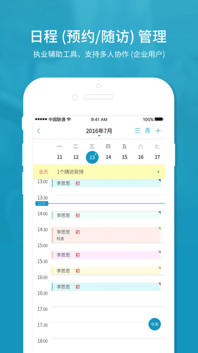 【日程管理】簡潔好用的日程管理,工作安排一覽無遺【協(xié)作辦公】同時支持診所內其他角色使用,前臺、老板、醫(yī)生、洽談師等多人協(xié)作