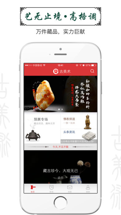 [古美術]是國內領先的古玩藝術品線上拍賣交易應用,由廈門古美術電子商務有限公司專為iPhone手機用戶推出,是收藏家、愛好者的必備工具。公司從事古玩藝術品行業(yè)多年,主營海外回流的中高端藝術品,藏品來自歐洲、美國、日本、臺灣、香港等大藏家的私人收藏、博物館珍藏、以及大型拍賣會精品。憑借高水準的文化產業(yè)運作模式,廣受藏友們信賴和好評,藏友競拍熱情活躍,每場都如火如荼!愛古玩,上古美術——趕快下載[古美術]!海量古玩藝術品盡收眼底,讓你輕松便捷拍得心儀藏品!