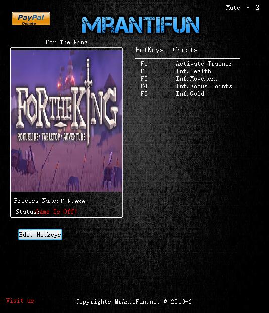 為了吾王修改器是專為《為了吾王》游戲玩家們所準(zhǔn)備的游戲修改工具。該工具是由MrAntiFun制作,擁有無限生命、無限移動、無限焦點、無限金錢等四項修改過功能,有愛自取。