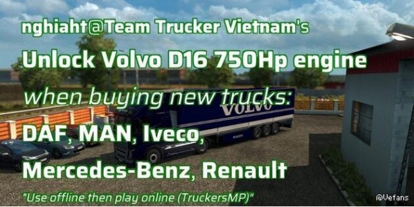 沃爾沃卡車發(fā)動機750hp解鎖購買新的時候(在經(jīng)銷商處),包括:天、人、Iveco、奔馳苯,雷諾。斯堪尼亞擁有自己的730hp引擎所以我不要改變它!