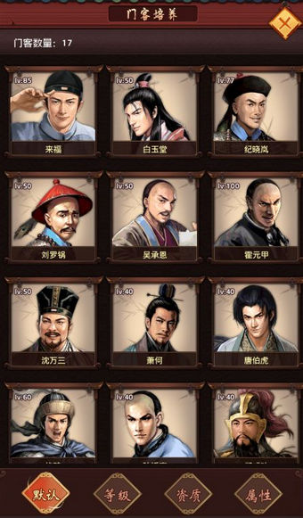 升級(jí)系統(tǒng),多種升級(jí)方式提升門客屬性