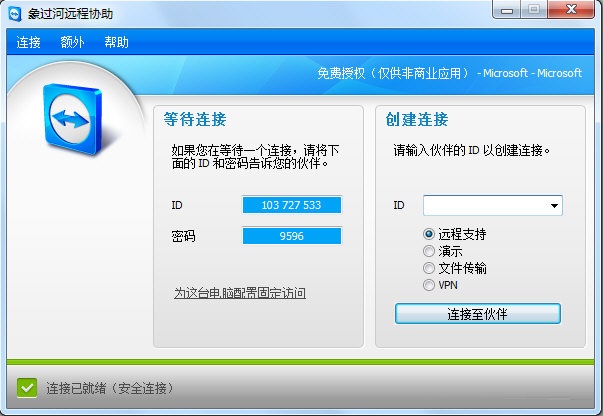 象過(guò)河遠(yuǎn)程協(xié)助工具是一個(gè)在任何防火墻和NAT代理的后臺(tái)用于遠(yuǎn)程控制,桌面共享和文件傳輸?shù)暮?jiǎn)單且快速的解決方案。為了連接到另一臺(tái)計(jì)算機(jī),只需要在兩臺(tái)計(jì)算機(jī)上同時(shí)運(yùn)行 TeamViewer 即可而不需要進(jìn)行一個(gè)安裝的過(guò)程。該軟件第一次啟動(dòng)在兩臺(tái)計(jì)算機(jī)上自動(dòng)生成伙伴 ID。只需要輸入你的伙伴的 ID 到TeamViewer,然后就會(huì)立即建立起連接。