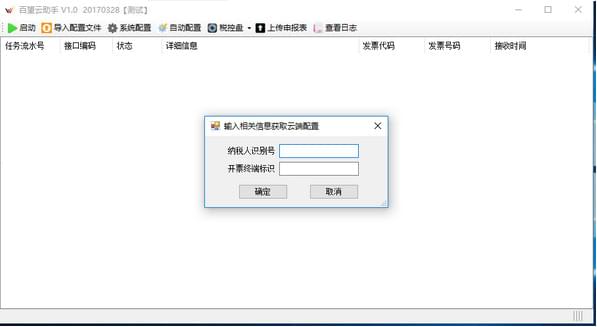 3.打開(kāi)百望云助手,點(diǎn)擊自動(dòng)配置,輸入納稅人識(shí)別號(hào)和開(kāi)票點(diǎn)代碼。