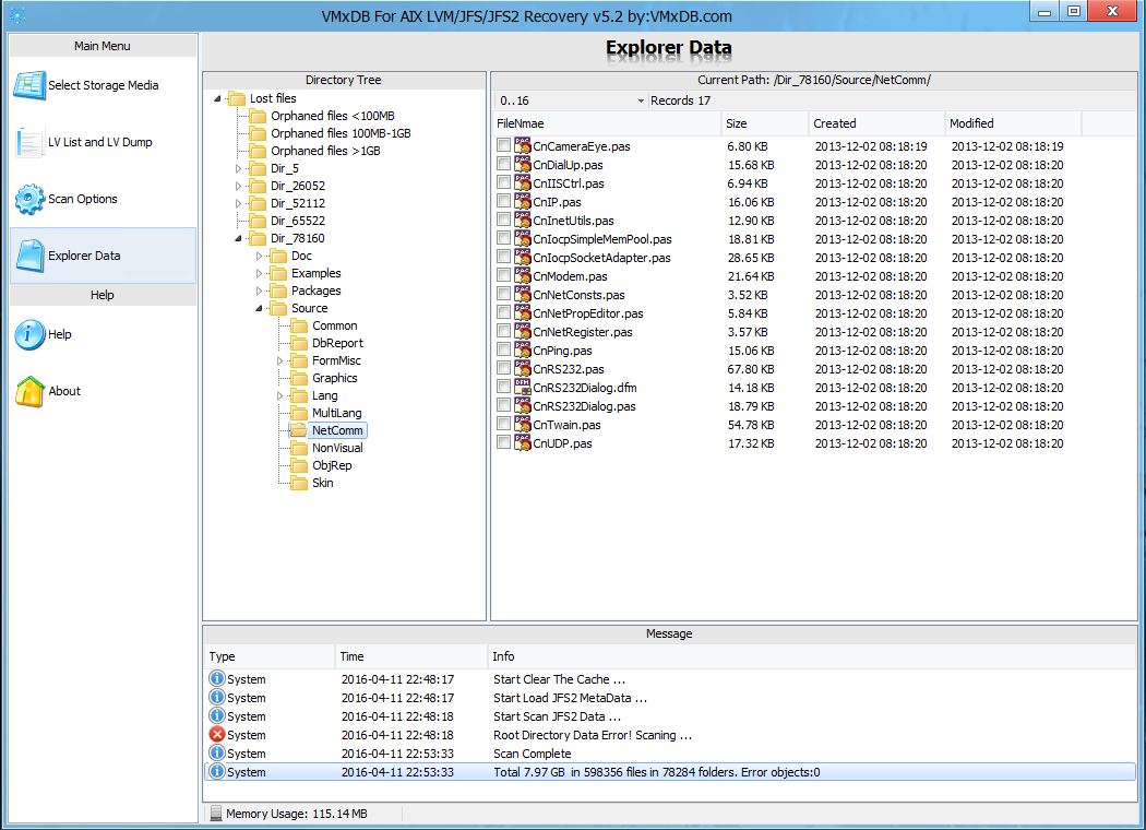 1、如有誤刪除LV/VG或是LVM磁盤破壞嚴重可以嘗試使用軟件的“尋找JFS/JFS2文件系統(tǒng)”功能找出JFS/JFS2文件系統(tǒng)來恢復數據。2、為了讓軟件發(fā)揮更好的性能,建議使用windows2008R2 64位系統(tǒng),內存最好大于4GB。