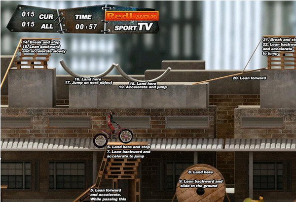上手度:“摩托車場地障礙賽”的操作十分簡單,使用鍵盤的方向鍵即可。游戲的內(nèi)容是障礙比賽,挑戰(zhàn)的就是玩家的操作,游戲整體的難度不抵。