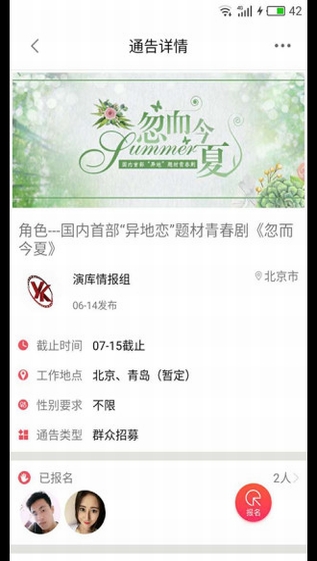 劇組可邀請藝人試戲,認(rèn)證藝人可以報名面試,一切都很透明。定期舉辦大型演員推介活動、海選活動,不一樣的試戲體驗。