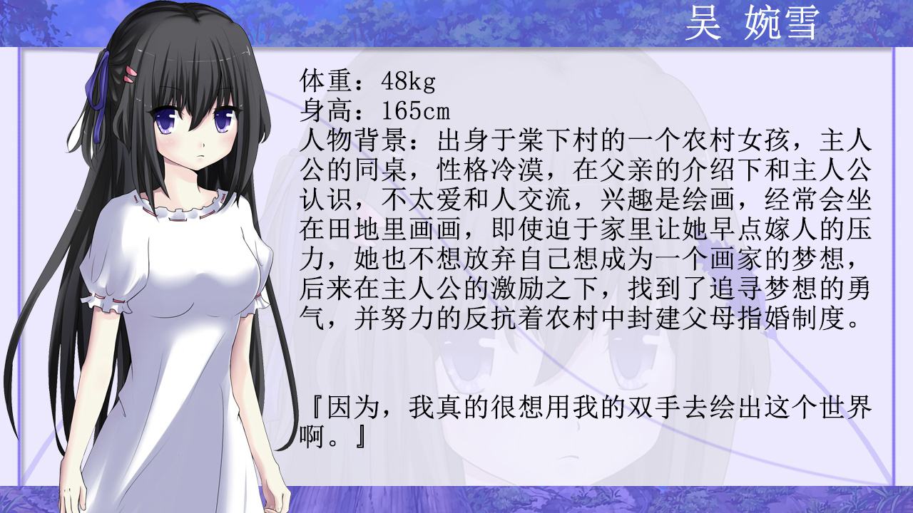 小C回合在插秧,男主可以選擇插或不插。這是個漲好感度的點。小C畫畫的夢想遭到他爸吳伯伯反對,男主安慰了小C。小C夜晚回合傲嬌向男主道謝,那段聲音太酥了,傲嬌萬歲!后面做早餐那段也是,特別萌!
