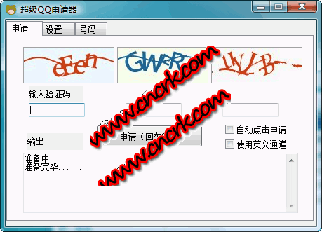2010.09.19更新: 不用換IP,只有輸入驗證碼就可以連續(xù)申請無保QQ 支持3個驗證碼一起輸入(一次申請3個號) 申請后自動保存文本,文本里有號碼密碼。