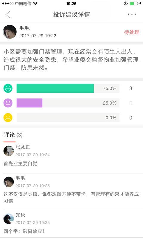 1)小區(qū)信息分享,安全隱患及時(shí)曝光2)小區(qū)管理,支持業(yè)委會(huì)入駐