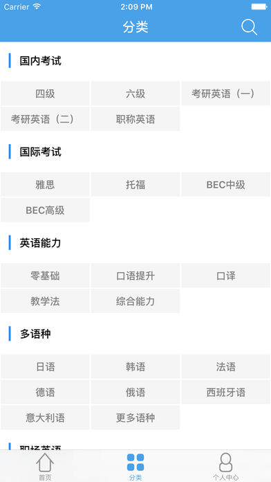 北外網(wǎng)課app分類清晰,能夠滿足考試類、入門類、實(shí)用類等不同語言學(xué)習(xí)者的多種需求。