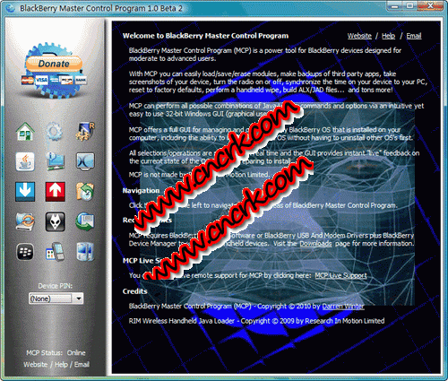 BlackBerry Master Control Program V1.0 英文官方安裝版 該工具操作非常簡單,功能強(qiáng)大,有些地方超過黑莓桌面器的應(yīng)用功能。它可以實(shí)現(xiàn):圖形化執(zhí)行所有JaveLoader的功能;升級(jí)和降級(jí)你PC上安裝的任何黑莓系統(tǒng)os;重新定義os文件安裝地點(diǎn);簡單完成常見的黑莓工具的基本動(dòng)作。