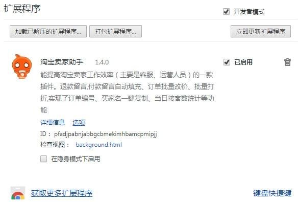 淘寶賣家助手是一款適用于谷歌瀏覽器上的小插件。它是專為淘寶賣家們所提供的,安裝使用后,可為賣家提供多種輔助,有效的提高淘寶賣家的工作效率 。
