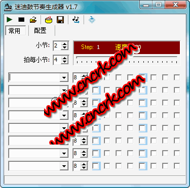 迷迪鼓是一款鼓節(jié)奏發(fā)生器,支持自定義鼓點(diǎn)節(jié)奏,能夠保存和讀取鼓節(jié)奏配置文件,也能夠?qū)⒐墓?jié)奏導(dǎo)出為MIDI格式文件