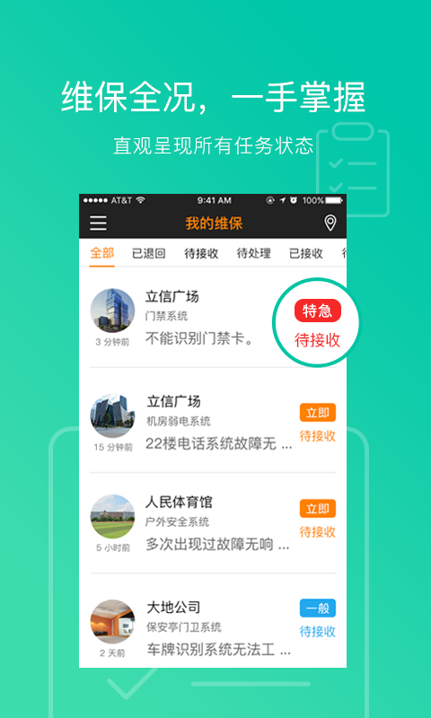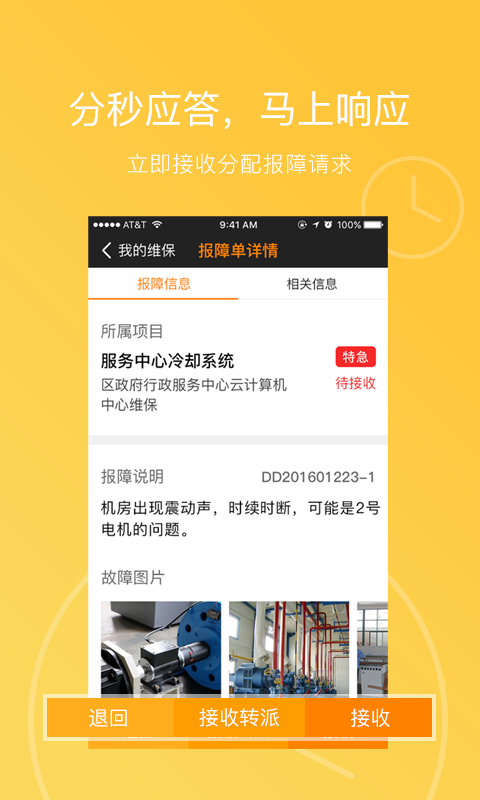 報(bào)障人員通過(guò)PC、APP快速進(jìn)行故障報(bào)修,維保人員立即接收、轉(zhuǎn)派維保任務(wù),推動(dòng)維保工作高效進(jìn)行。