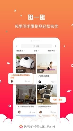 您可以通過(guò)翻閱小區(qū)新鮮事,瀏覽更多與生活息息相關(guān)的消息,看看我們小區(qū)有哪些達(dá)人入住,鄰居們都有什么寶貴經(jīng)驗(yàn)分享;打破樓上樓下不認(rèn)識(shí),開(kāi)口不知聊什么的僵局。您還可以和鄰居們一起組織各種線下活動(dòng),健身郊游,組隊(duì)開(kāi)黑等等,發(fā)現(xiàn)更多興趣相投的朋友!
