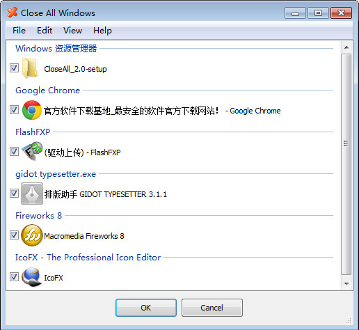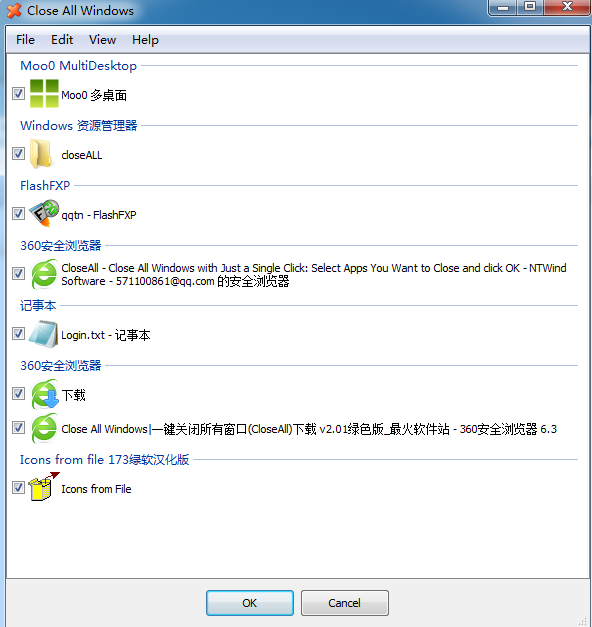Close All Windows是一款電腦程序關(guān)閉軟件。軟件體積小巧,操作方便。一鍵關(guān)閉所有程序可以在電腦運(yùn)行過多程序而卡死時(shí),一鍵幫你關(guān)閉所有程序窗口,讓電腦立馬運(yùn)行正常。不用再關(guān)機(jī)重啟了。