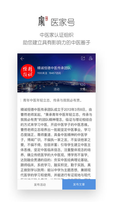 致力于幫助中醫(yī)從業(yè)者隨時隨地打造個人品牌,提升醫(yī)患互動,擴展行業(yè)人脈,體現(xiàn)自身價值。