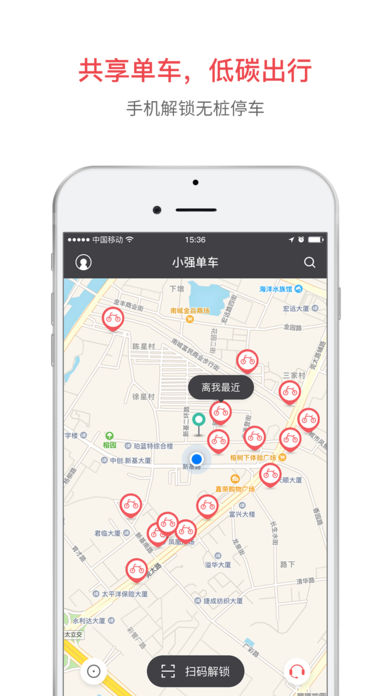 “小強(qiáng)單車”是基于互聯(lián)網(wǎng)模式的共享單車解決方案,專注于短途出行。用戶通過手機(jī)APP即可隨時隨地在線找車,線下掃碼解鎖單車,還可實(shí)現(xiàn)GPS定位、實(shí)時計費(fèi)、在線支付等功能,帶來更優(yōu)質(zhì)的出行方式和綠色生活。