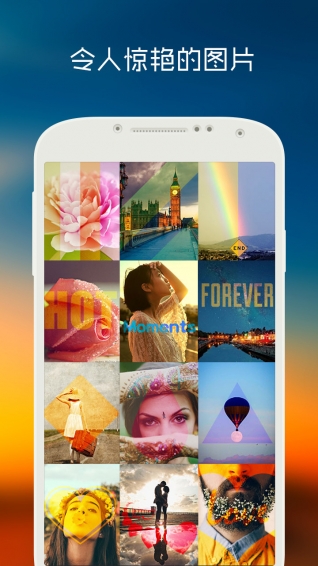 讓你在一張照片上使用不同的濾鏡組合創(chuàng)造出驚人的效果。使用預設好的模板和不同濾鏡組合,可以快速在一張照片上展現(xiàn)多種風格。當然也可以使用65種濾鏡組合你自己的濾鏡效果。23個拼接模板 將照片分成不同網(wǎng)格,每個網(wǎng)格使用單獨濾鏡效果