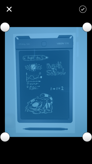 3:樂寫APP自動識別VSON液晶電子手寫板,嘗試將繪圖區(qū)域截出,識別失敗則用戶可以手動裁剪