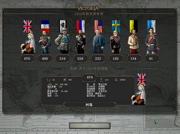 維多利亞太陽帝國是一款非常經(jīng)典的歷史策略模擬游戲,玩家在這款游戲中扮演的是一位19世紀的君主,你可以通過加工生產(chǎn)、商業(yè)貿(mào)易、外交戰(zhàn)爭等方式,稱霸全球。