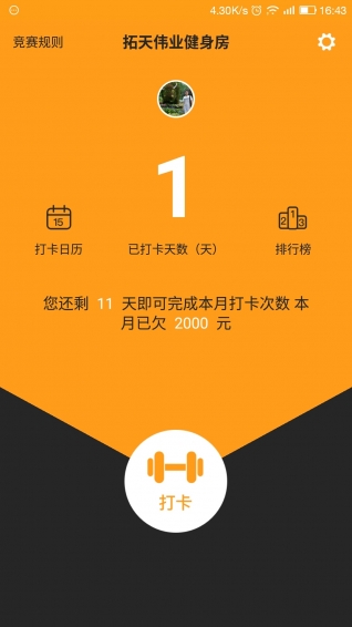 拓天健身房軟件是一個(gè)款集健身和娛樂(lè)于一體的生活軟件,主要是用于集體健身相互監(jiān)督打卡簽到,其中打卡簽到是實(shí)時(shí)的,調(diào)用攝像頭拍照上傳照片簽到,證明你在健身房。在增加樂(lè)趣,避免個(gè)人偷懶拖拉,鍛煉身體的同時(shí)增加一些趣味。【更新日志】