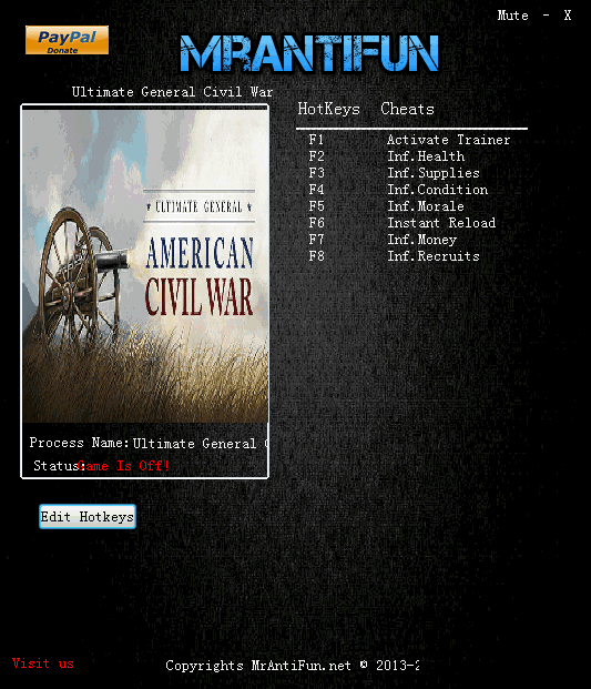 《終極將軍:內(nèi)戰(zhàn)》(Ultimate General: Civil War)是一款以19世紀(jì)美國(guó)南北戰(zhàn)爭(zhēng)為題材的即時(shí)策略類游戲。游戲模擬真實(shí)的戰(zhàn)爭(zhēng)場(chǎng)景,從小到大的戰(zhàn)役共有50多起,超過數(shù)百英里的地形,豐富的兵種和戰(zhàn)術(shù)選擇,帶你體驗(yàn)美國(guó)歷史上最血腥的時(shí)期。【修改器說明】