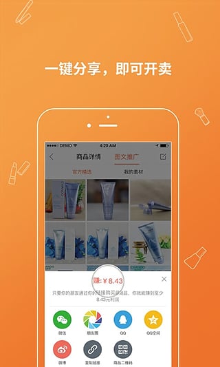 1、一鍵多渠道分享商品,圖文推廣更直觀~2、買賣皆由你定,賣貨賺毛爺爺,買貨省毛爺爺。