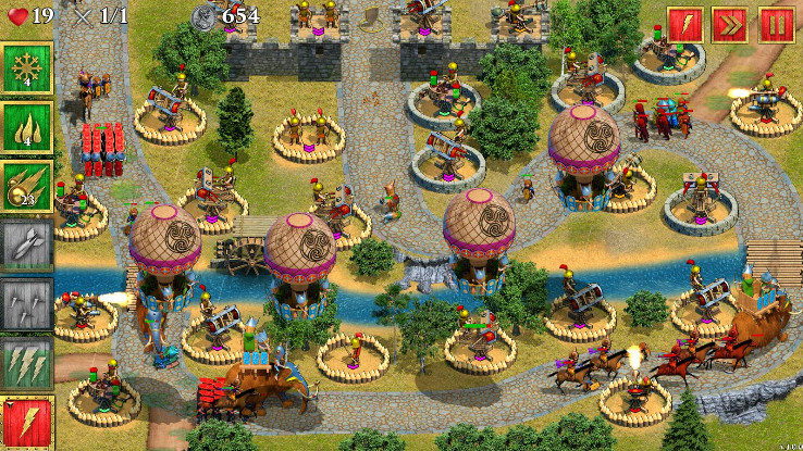 自從第一個(gè)羅馬軍團(tuán)降落在大不列顛以來已經(jīng)十多年了。大不列顛的大部分地區(qū)已被羅馬軍隊(duì)占領(lǐng),但持續(xù)的戰(zhàn)爭(zhēng)仍在繼續(xù)。英國(guó)本地的凱爾特人和英國(guó)人試圖抵抗強(qiáng)大的羅馬軍隊(duì)。你作為一個(gè)年輕的羅馬貴族,將參與打擊反叛。你需要建立強(qiáng)大的武器計(jì)劃保護(hù)戰(zhàn)略,明智地在各個(gè)層面上與許多單位進(jìn)行戰(zhàn)斗,使用不同的策略來完成關(guān)卡,還需要升級(jí)你的武器和法術(shù)。【游戲特色】