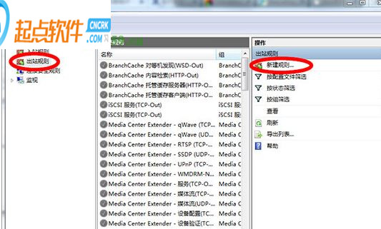 3、點(diǎn)擊出站規(guī)則,這進(jìn)行點(diǎn)擊紅框里面的新建規(guī)則;